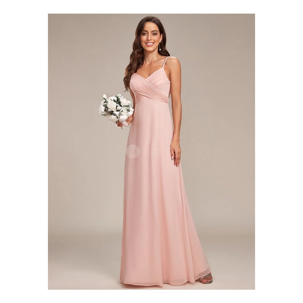 Společenské šaty dlouhé růžové šifonové na ramínka – Ever Pretty ES80026PK