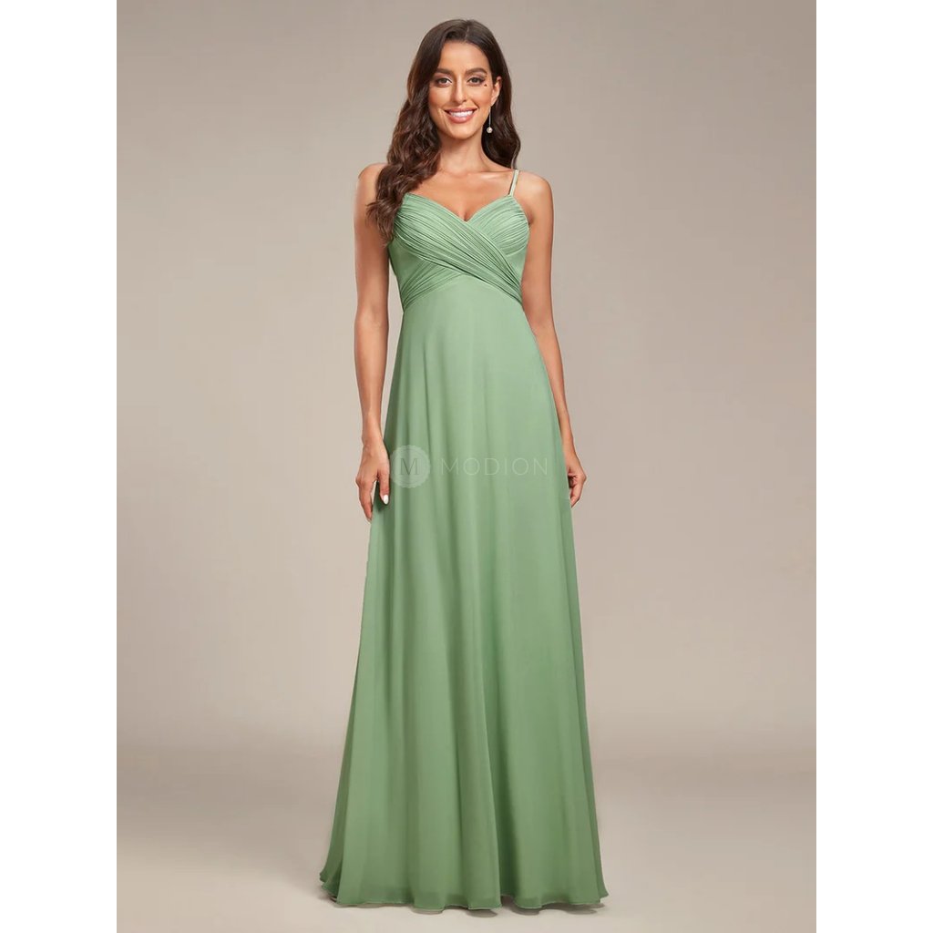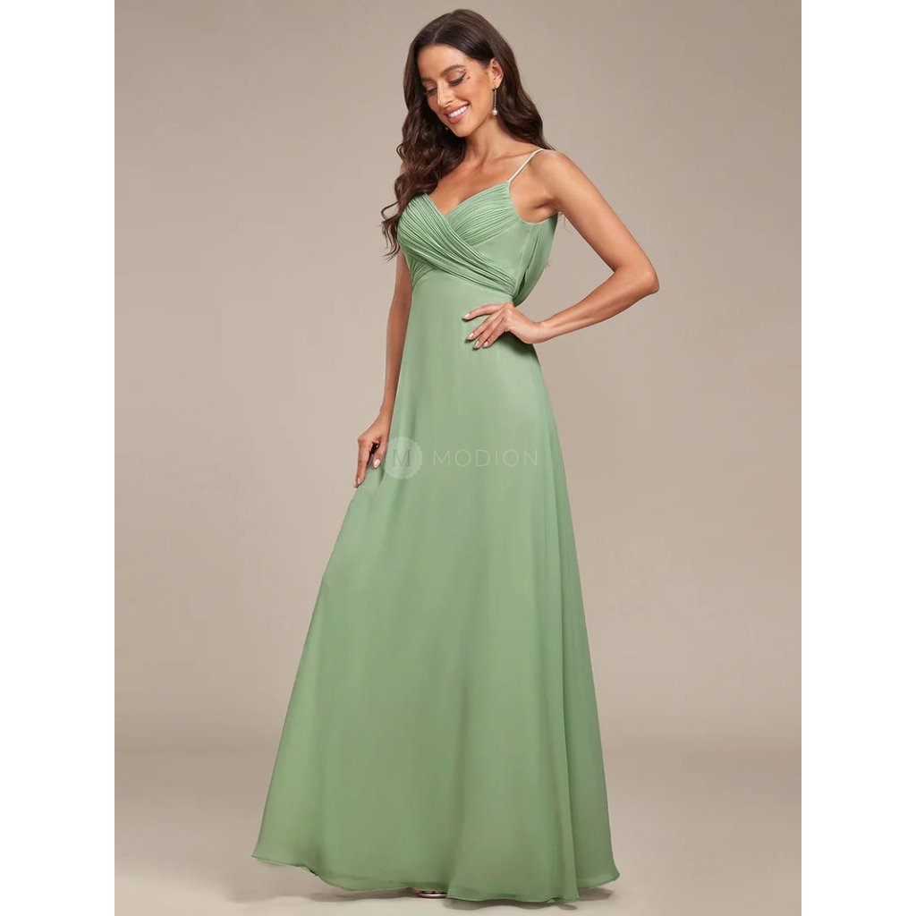 Společenské šaty dlouhé zelené šifonové na ramínka – Ever Pretty ES80026SG