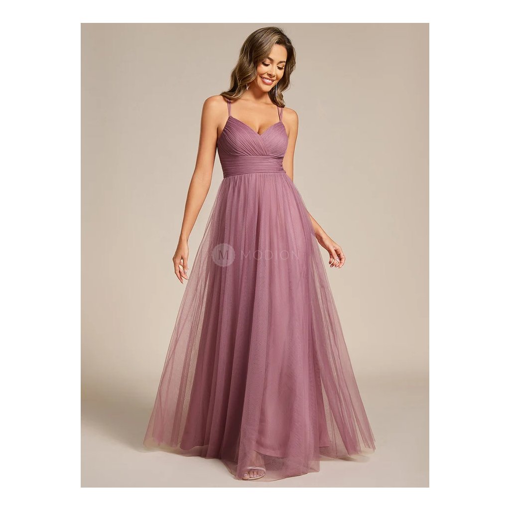 Společenské šaty dlouhé starorůžové tylové – model ESS0056OD