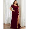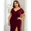 Společenské šaty pro plnoštíhlé ženy, které hledají ideální kombinaci pohodlí a elegance. Mírně poddajný materiál se přizpůsobí vašim křivkám, zatímco smyslný rozparek dodá šatům ženskost a půvab. Krátký rukáv nabízí příjemné zakrytí paží, zatímco třpytivé zdobení přidává šatům slavnostní nádech. Perfektní volba pro plesy, svatby, večírky a další společenské události, kde chcete vyniknout a zároveň se cítit pohodlně.