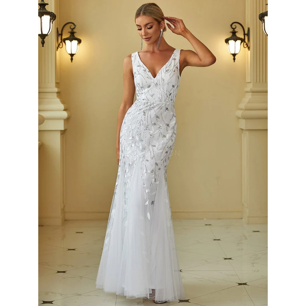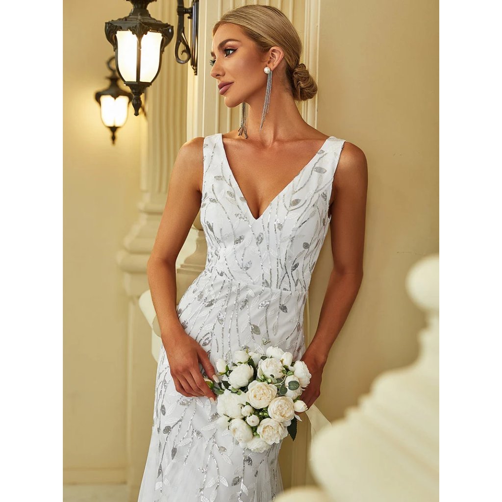 Svatební šaty dlouhé tylové s flitry – Ever Pretty EP07886WH
